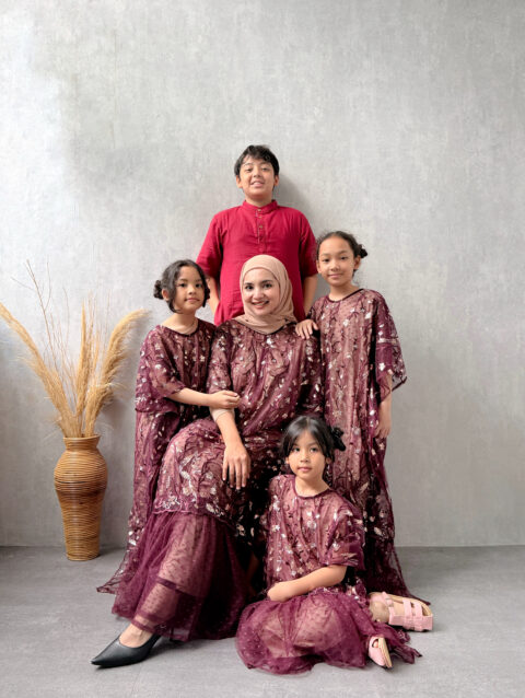 Assagi burgundy – Kaftan dewasa / Ibu dan Anak