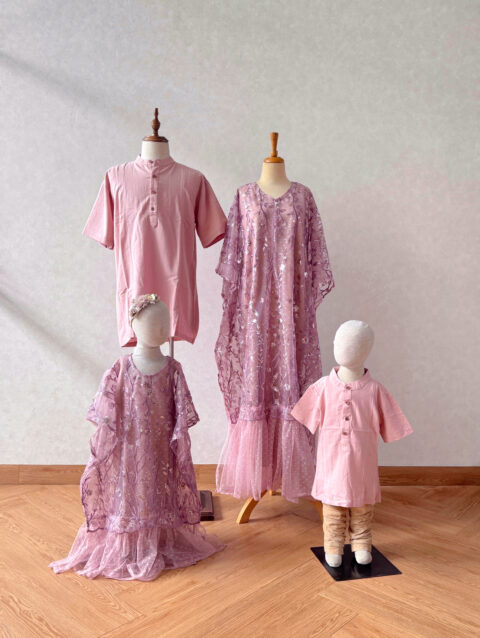 Assagi pink Kaftan dewasa / Ibu dan Anak